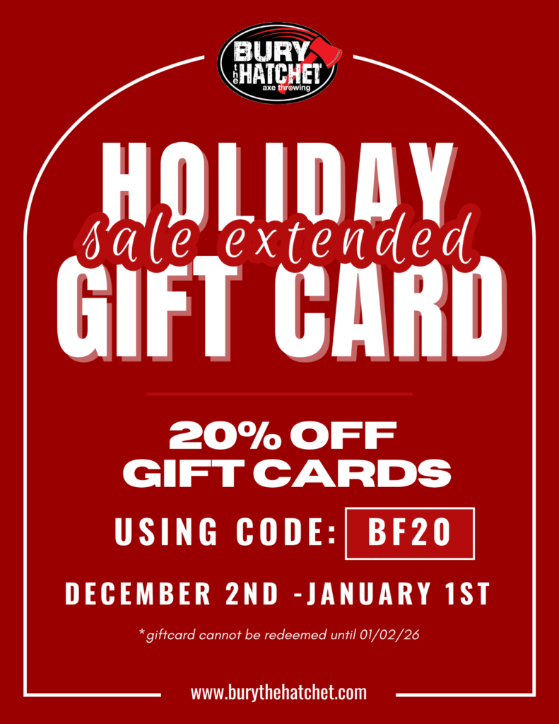 | Experience the thrill of throwing an axe at a wooden target at Bury The Hatchet. All of our indoor axe throwing ranges have multiple lanes where customers get a one of a kind experience in a fun urban setting. In between turns you can watch from the sidelines and enjoy a drink (or a few) with your friends. |